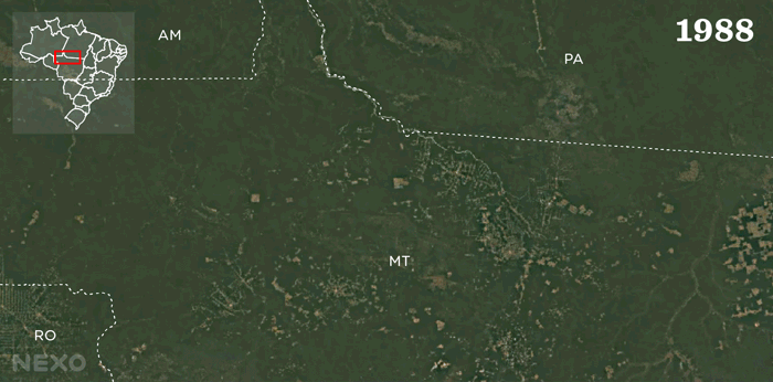 Gif animado mostrando o desmatamento na região do Norte do Mato Grosso