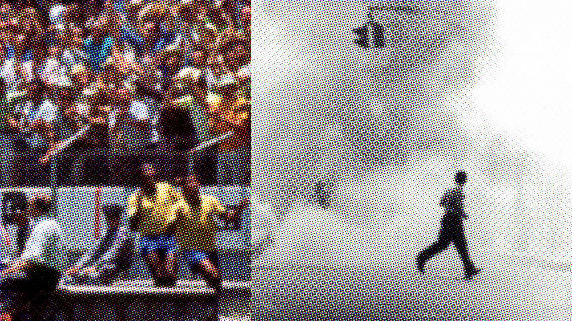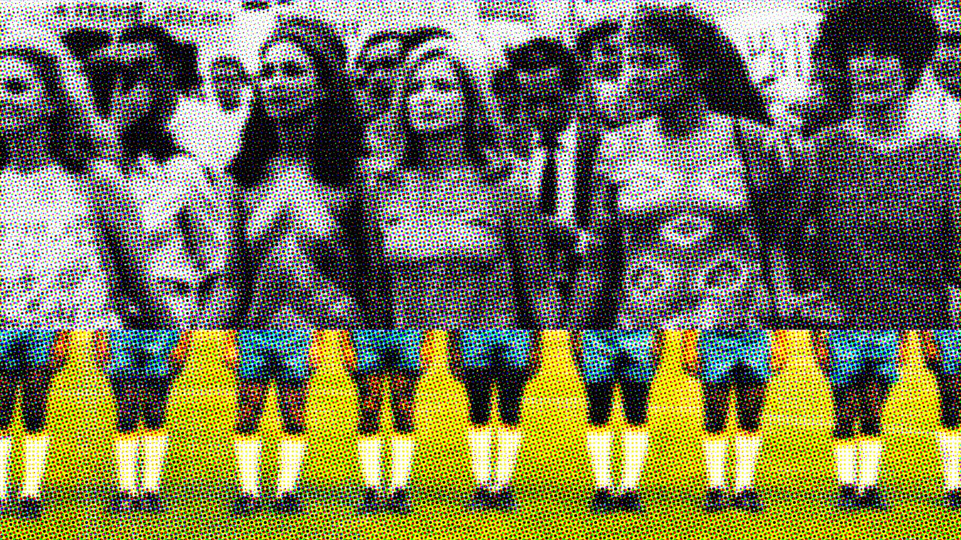 Para ilustrar a matéria, produzi diversas colagens com fotos de momentos críticos da ditadura militar, lado a lado com imagens icônicas da seleção brasileira de futebol. Os movimentos e formas se sobrepõe e se misturam, e o efeito de retícula dá uniformidade à imagem — e também remete às revistas fotográficas da época, como a revista Realidade.
