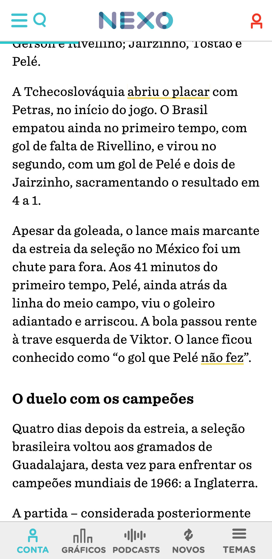 Este conteúdo foi usado para o desenvolvimento de um layout modelo para reportagens especiais do Nexo, com a padronização dos elementos gráficos como abertura, títulos, intertítulos, olhos e posicionamento das imagens. Esse formato dá velocidade e flexibilidade na construção desse tipo de conteúdo.