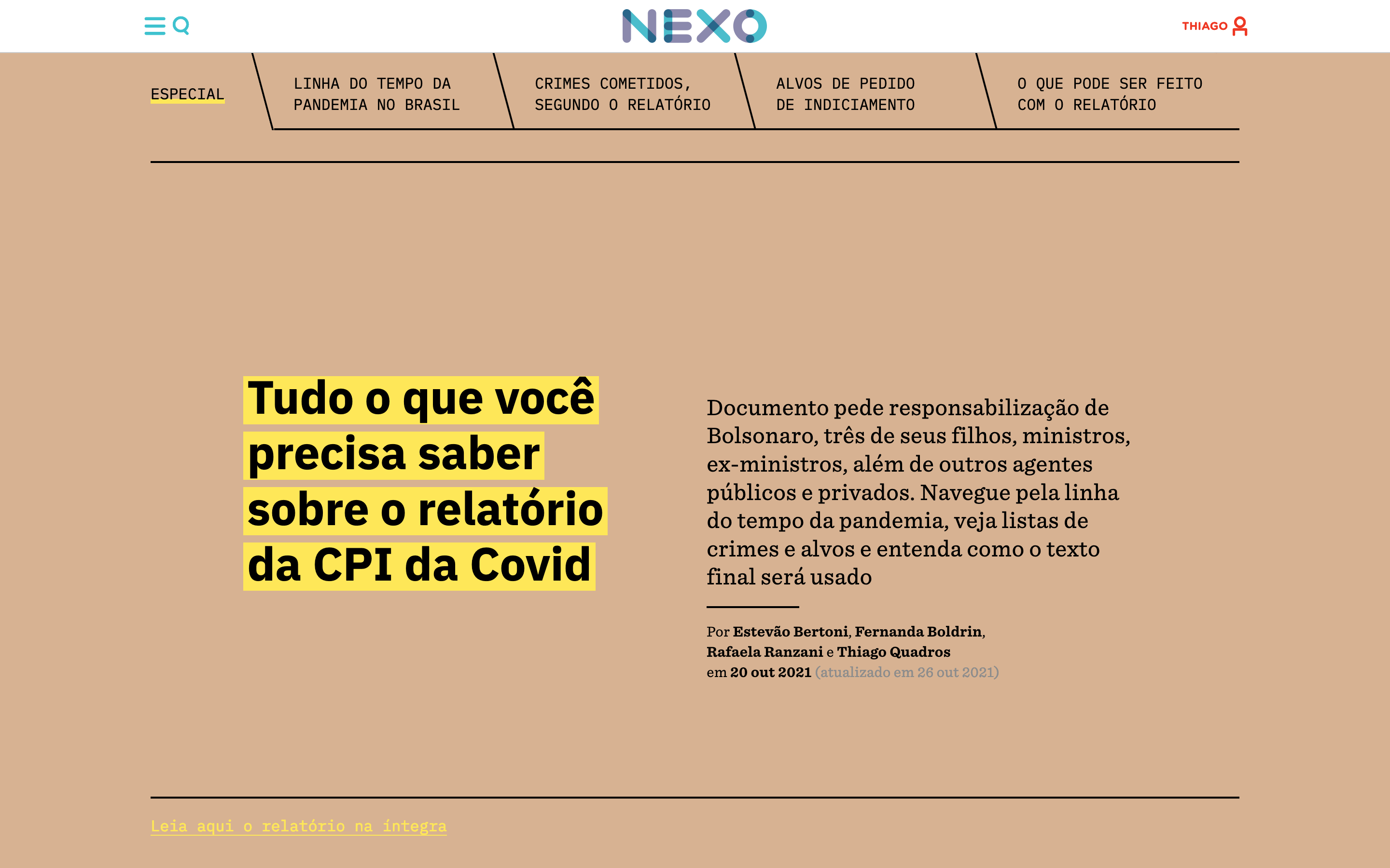 O desafio foi transformar o relatório da CPI da covid numa página especial, destacando os pontos mais importantes: os crimes relatados, os alvos de indiciamento e as possibilidades do relatório. E, além disso, não deixar de lado o contexto político, social e sanitário investigado pela comissão.